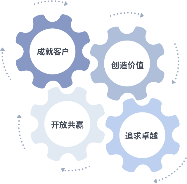 成就客户是一切决策的出发点,创造价值是衡量所有工作的标准,追求卓越是rb88随行版做事做人的态度,开放共赢是rb88随行版的格局也是最终的结果。价值观的齿轮环环相扣,推动着组织里的每个人不断向前。